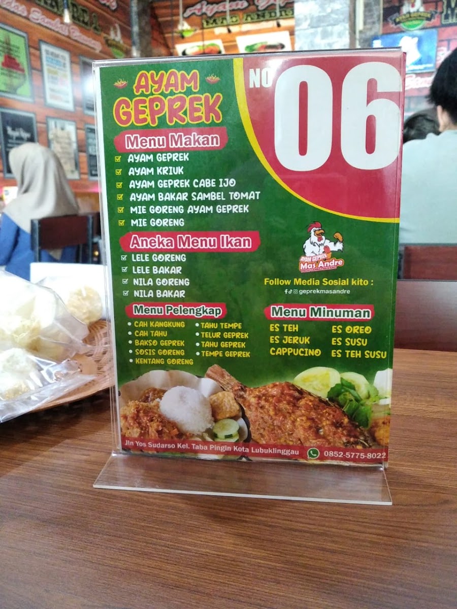 Welcome to Ayam Geprek Mas Andre, a culinary gem located in Taba Pingin, Lubuk Linggau Selatan II, South Sumatra. This vibrant eatery specializes in the beloved Indonesian dish, Ayam Geprek, which features crispy fried chicken smashed with a spicy sambal that truly tantalizes the taste buds. Visitors can expect a delightful explosion of flavors that perfectly balances heat and savory notes.
